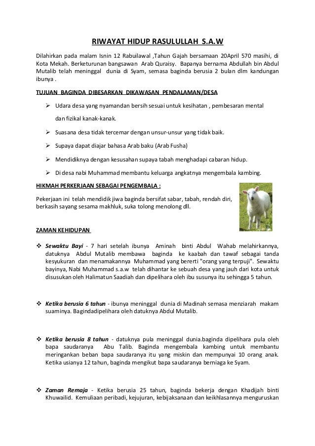 . SIRAH RIWAYAT HIDUP NABI MUHAMMAD SAW - BHGN 1. Fatin Syahidah Binti Shaharudin Pada saat inilah kehidupan Baginda sallAllahu alaihi wasallam mula menerima pelbagai tentangan dan halangan yang. Penulis juga telah melukiskan riwayat hidup Nabi Besar.
